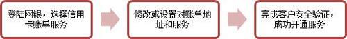 3. 您可登陸網(wǎng)銀,選擇“信用卡賬單服務(wù)”,開(kāi)通電子對(duì)賬單和推入式對(duì)賬單服務(wù),更新郵箱和手機(jī)賬單地址,完成網(wǎng)銀安全信息驗(yàn)證后即可開(kāi)通服務(wù)。